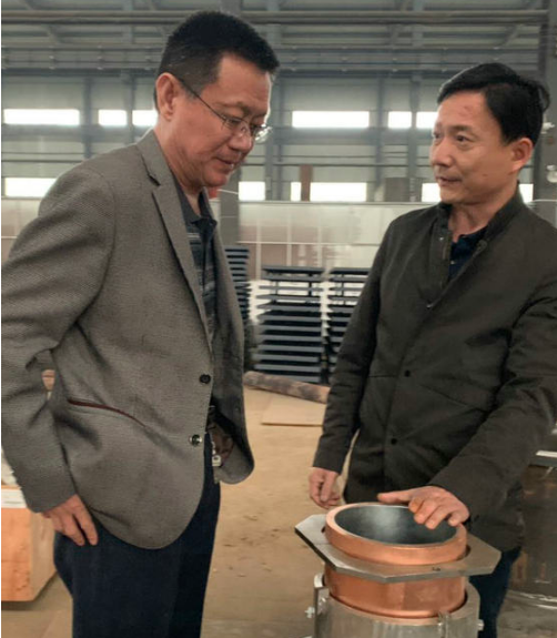 濰坊特鋼廠長李炳亮(中)、工程師徐培升(右)與中鋼聯機械制造有限公司廠長普朝鋒(左)合影留念。