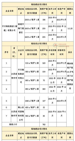 從《公示》中獲悉,中天鋼鐵擬在南通市海門港新區新建3座煉鐵高爐,換算產能606萬噸,新建3座煉鋼轉爐,換算產能585萬噸。擬開工時間為2020年9月,置換方案具體內容整理如下: